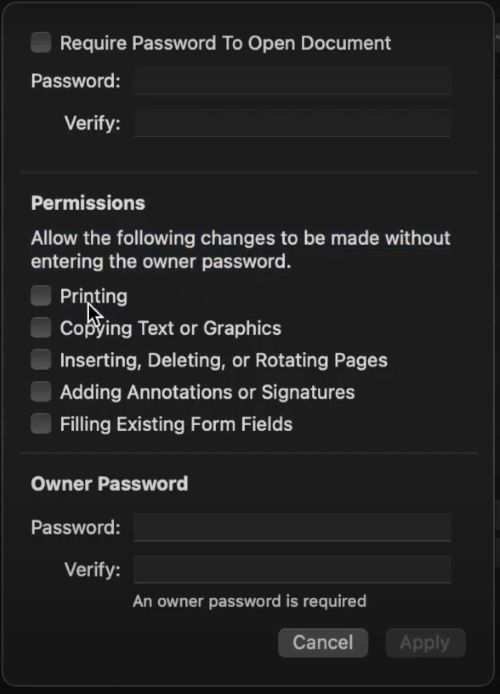 Preview is Apple’s default PDF reader and editor. Users can use Preview to view, annotate, and protect PDFs. It lets you set permission passwords to protect a PDF from editing.