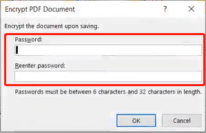 3. Tick Encrypt the document with a password, enter the password, then save as a PDF document.